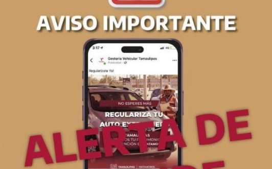 Ciudad Victoria, Tamaulipas.- La Secretaría de Finanzas del Gobierno de Tamaulipas informa a la ciudadanía que se ha detectado la operación de páginas falsas en redes sociales que ofrecen “gestionar” trámites relacionados con derechos vehiculares y/o la regularización de vehículos de procedencia extranjera, con el propósito de estafar a las personas usuarias.